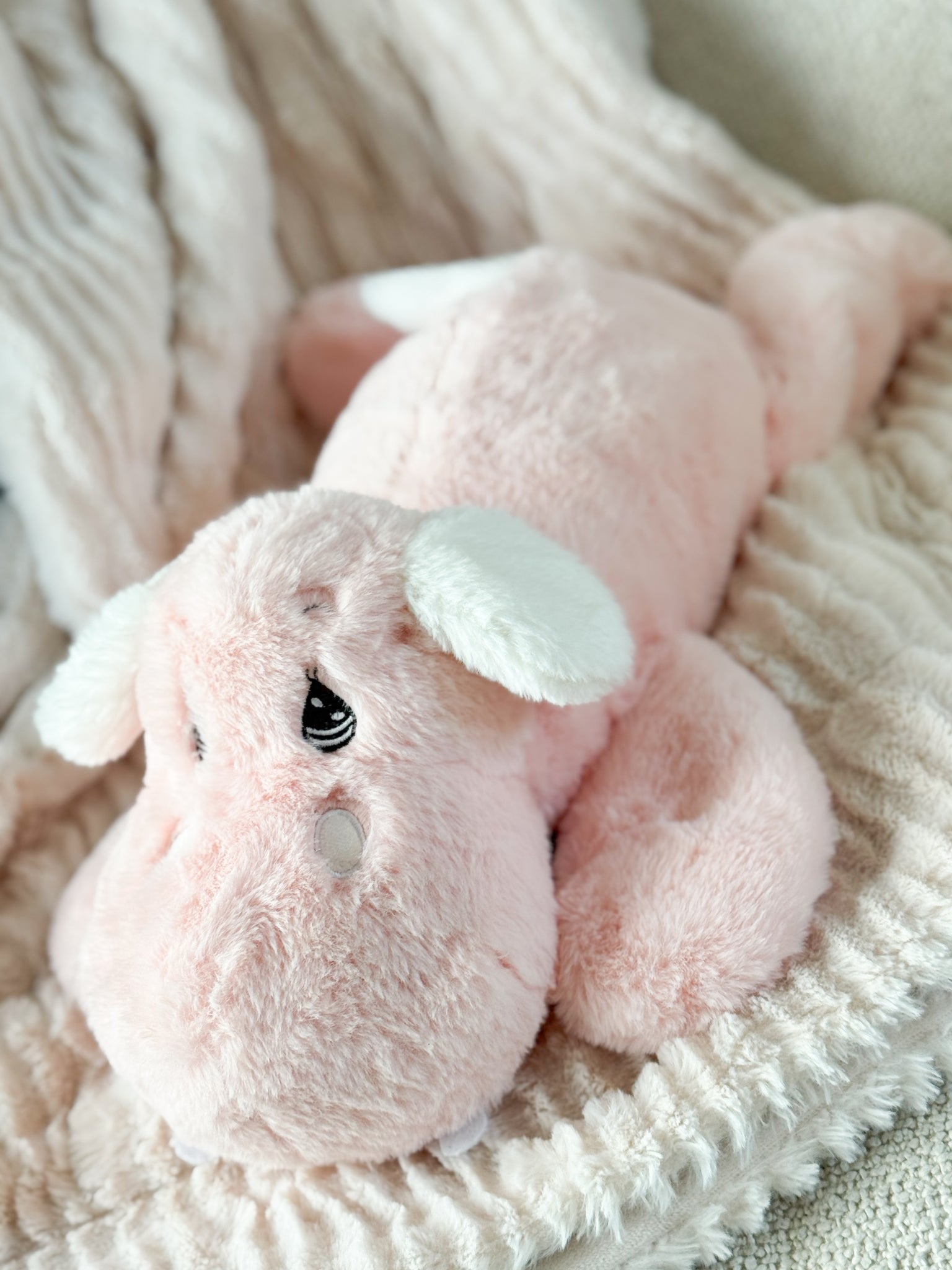 Notre nouveauté Hippopo l'hippopotame est l'animal lourd parfait pour accompagner votre enfant. En plus d'être lavable, cet animal aux propriétés proprioceptives est incroyablement joli avec ses petits yeux et son gros museau.